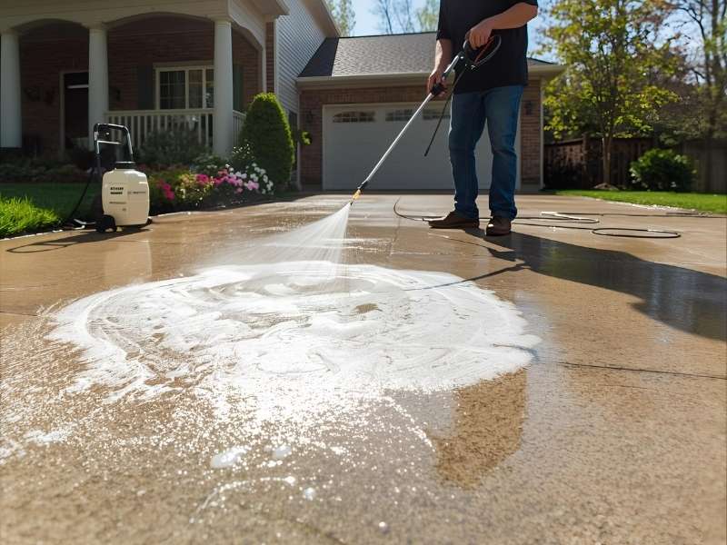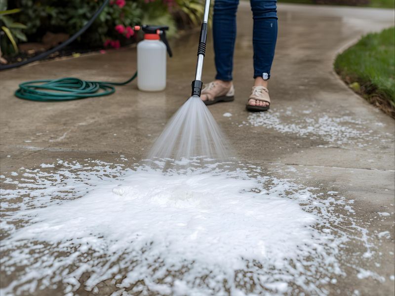 This approach works well for regular maintenance cleaning but may require multiple applications for heavily stained areas. The surfactants in quality dish soap help lift dirt and grime from the driveway surface, making pressure washing more effective.