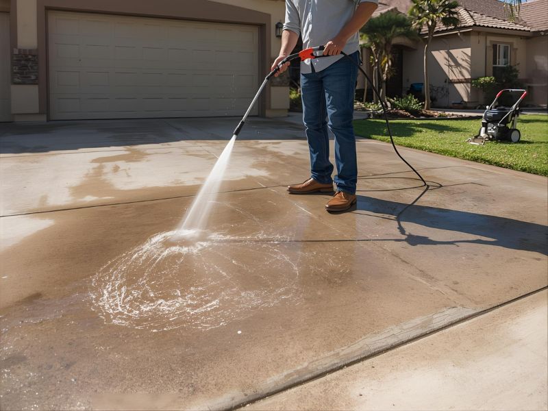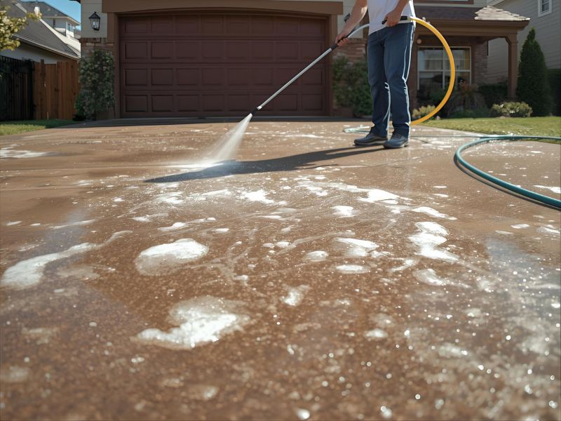 Work in manageable sections to prevent cleaning solutions from drying before pressure washing. Large driveway areas may require sectional treatment to maintain consistent results throughout the cleaning process.